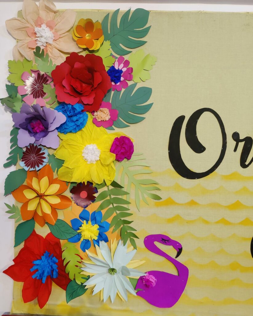 Our handmade flowers and leaves brought a unique charm to the Orientation Day ceremony that store-bought decorations simply cannot achieve.